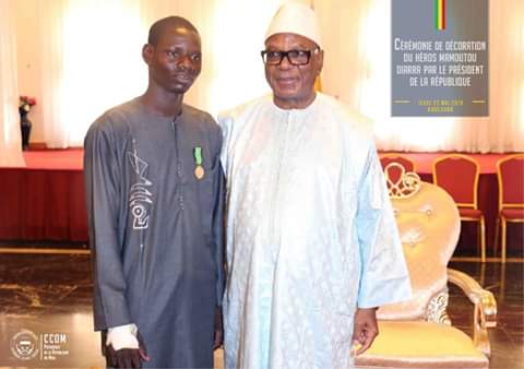 Le Président de la République, Chef de l’Etat, Son Excellence Monsieur Ibrahim Boubacar Keïta , Grand Maitre des Ordres nationaux, a décerné la médaille du « Sauvetage » à Mamoutou Diarra , jeune étudiant en arabe. Il avait sauvé 9 membres de sa famille en risquant la sienne dans les circonstances difficiles, lors des inondations dramatiques du jeudi 16 mai 2019 à Niamakoro Dougoukôrô. La cérémonie solennelle de décoration a eu lieu dans l’après-midi du jeudi 23 mai 2019 , dans la Salle des Banquets du Palais présidentiel de Koulouba. Le jeune héros malgré son statut d’étudiant sera recruté pour servir au sein des structures de la protection civile.