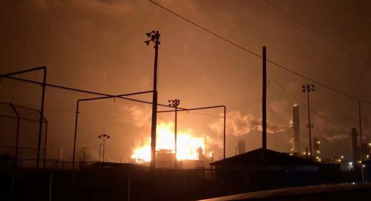 Les secours ont décrété l’évacuation obligatoire des alentours après l’énorme déflagration qui a touché une usine pétrochimique à Port Neches.PlayCurrent Time0:00/Duration Time0:04Loaded: 0%Progress: 0%0:00Fullscreen00:00Mute
