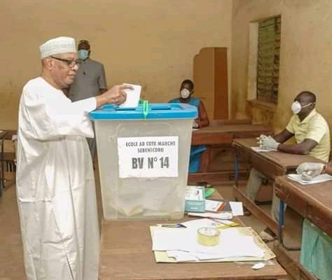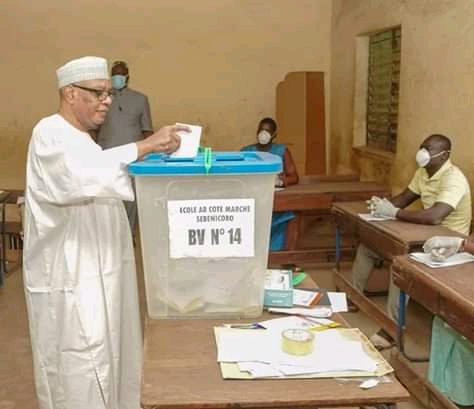 Le Président de la République, Chef de l’Etat Son Excellence Monsieur Ibrahim Boubacar Keita a accompli son devoir citoyen, dans le bureau de vote No 14 du groupe scolaire Gaoussou Doumbia à Sébénincoro en commune 4 du District de Bamako.
