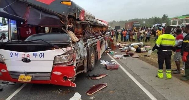 Des témoins sur place ont fait part de corps et morceaux humains qui jonchaient la voie. Les pompiers et services de police du Ghana sont à pieds d’oeuvre pour sauver les blessés et rétablir la circulation.