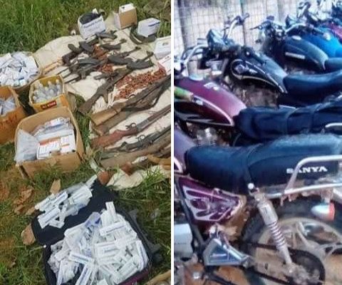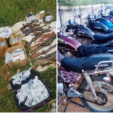 Ces matériels saisis à Tolodjé comprennent 04 PM, 06 fusils de chasse, des munitions en vrac, 09 motos et un important lot de médicaments.