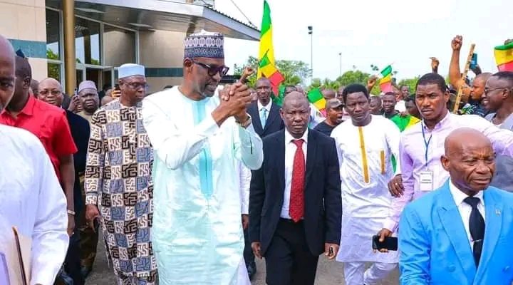 Dans le cadre la deuxième étape de la session de vulgarisation du projet de constitution, Son Excellence Monsieur Abdoulaye DIOP, Ministre des Affaires étrangères et de la Coopération internationale et sa délégation ont été accueillis, le 27 mai 2023 à Bata, capitale économique de la Guinée équatoriale, par le Délégué du Gouvernement, le Consul honoraire du Mali ainsi que ses Collègues du Burkina et du Sénégal et les leaders communautaires maliens.