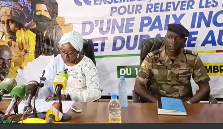 Pour améliorer la participation des femmes dans le processus de paix, à la célébration de la semaine nationale de la réconciliation, la ministre de la Promotion de la Femme, de l’Enfant et de la Famille a organisé, ce lundi 18 septembre 2023 au CNDIFE, la journée de réflexion sur l’amélioration de la participation des femmes dans le processus de paix, dont le thème national<< Ensemble, engageons-nous pour relever les défis d’une paix inclusive et durable au Mali>>. Cette cérémonie a été présidée par le colonel Ismaël Wagué, le Ministre de la Réconciliation, de la Paix et de la Cohésion Sociale chargé de l’Accord pour la paix et la Réconciliation Nationale, en présence de Dr. Coulibaly Mariam Maïga et de nombreux participants.
