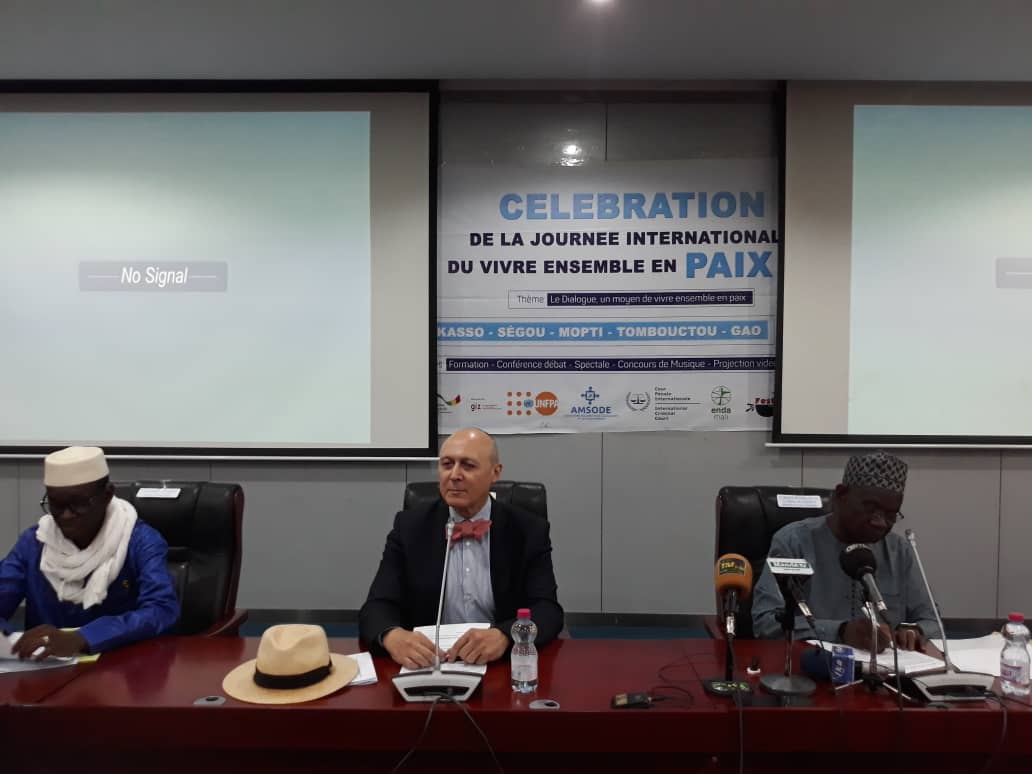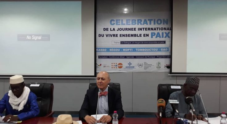 La quatrième édition de journée internationale de vivre ensemble en paix, a été commémorée, et couplée à la remise de matériels de sonorisation au Festival vivre ensemble. Le thème retenu de cette année est : Le Dialogue, un moyen de vivre ensemble en paix, dont le partenaire est l’Union Européenne à travers la GIZ, la République fédérale d’Allemagne. Le lancement officiel de cette journée a été présidé par le représentant du ministre de l’Artisanat, de la Culture, de l’Industrie hôtelière et du Tourisme, M. Yamoussa Fané. C’était en présence du représentant de l’Union Européenne M. Michel De Knoop, du président de l’ONG vivre ensemble M. Salaha Maiga, du préfet du cercle de Niafunké représentant du Gouverneur de la Région de Tombouctou M. Zakaridia Samaké et de nombreux invités. Cette cérémonie a eu lieu le jeudi 16 Mai 2024 au CICB.